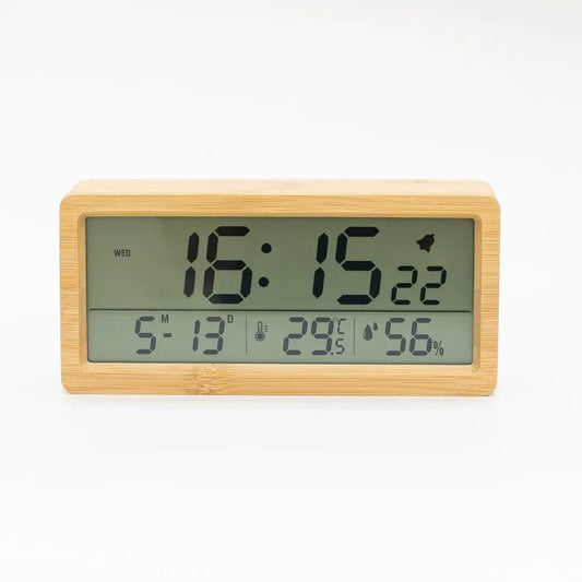 Horloge/Réveil Numérique Bois | Élégance et Infos Complètes sur un Large Écran